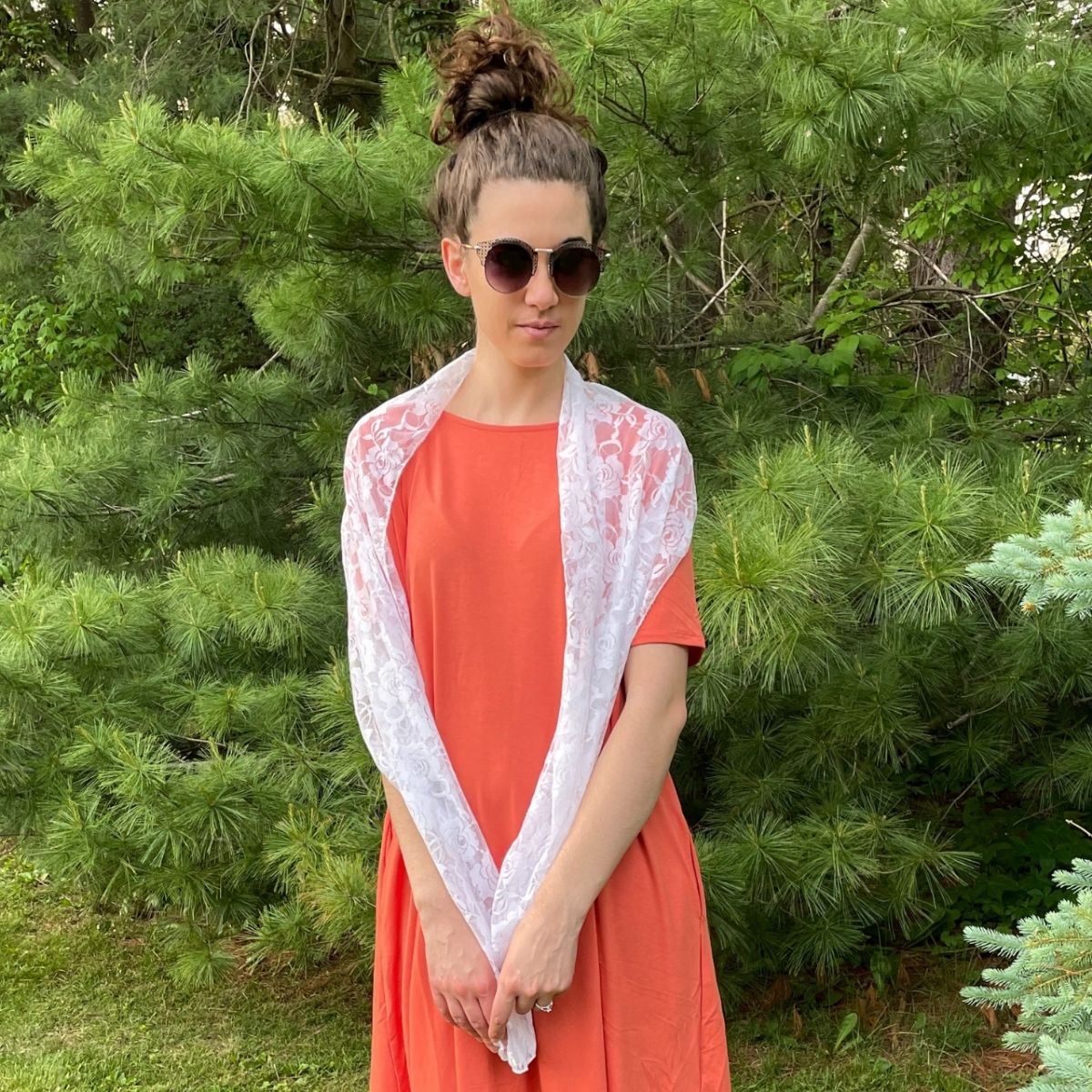 ELEGANT FLORAL SHEER LACE SCARF STOLE