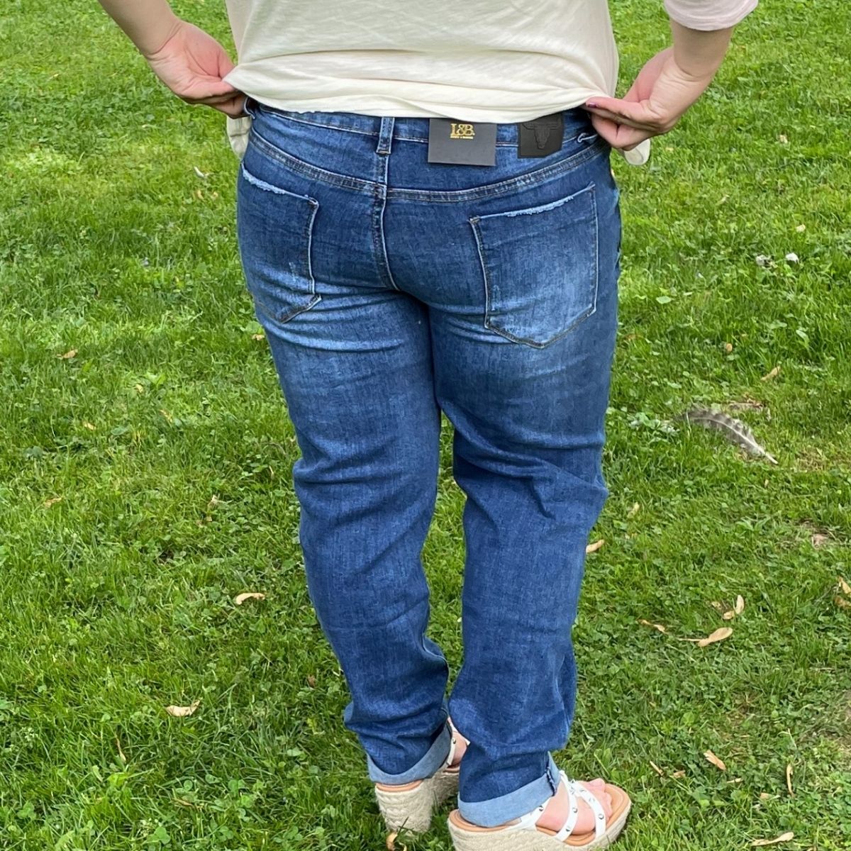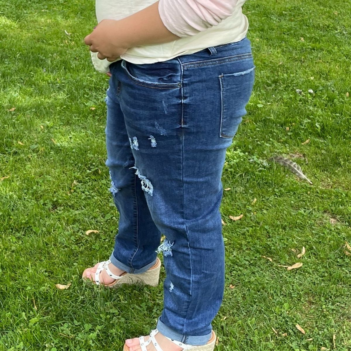Light Mid Wash Distressed ,Blue Ripped Midrise Boyfriend Jeans. Comfortable, Perfect Fit. Can be paired with your favorite tops! COTTON, POLY, ELASTANE, VISCOSE, Designed in Texas, Made in China, MACHINE WASH, TUMBLE DRY, WARM IRON, Models are wearing 14 and 18